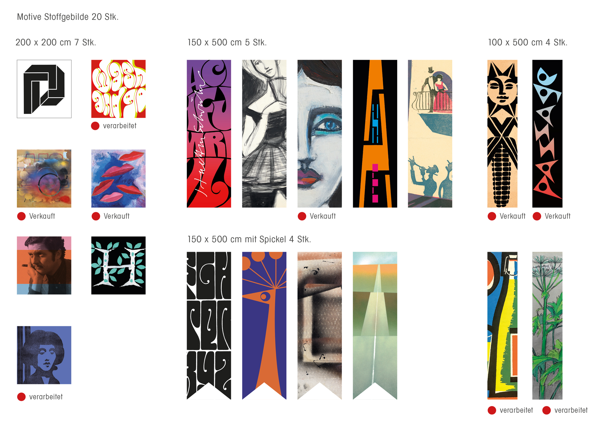 Die Stoffunikate können als ganzes Format (1 x 5, 1.5 x 5 und 2 x 2 m) und auch pro Laufmeter erworben werden.