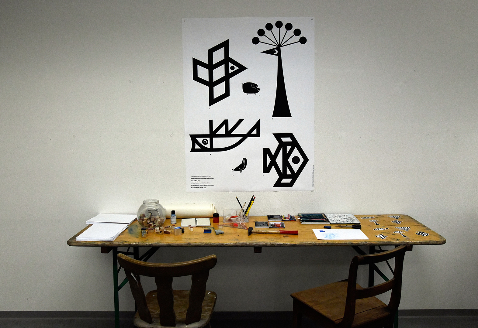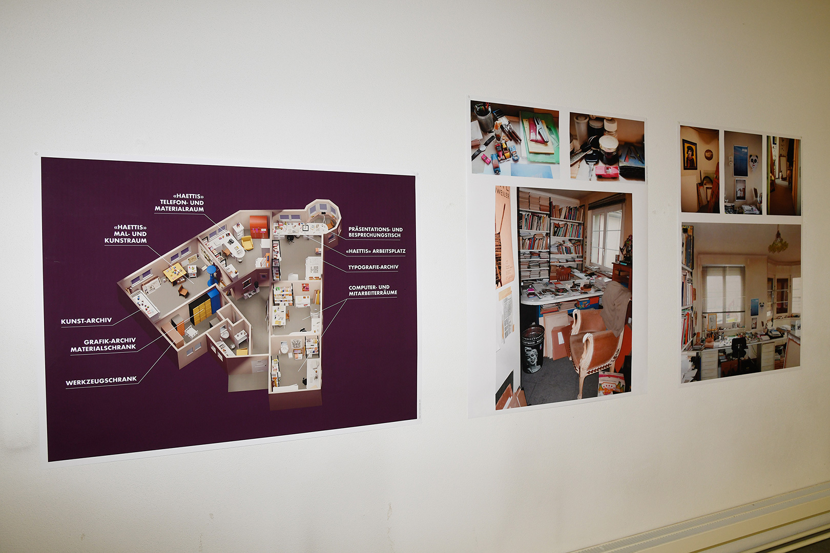 Im benachbarten Hirschensaal an der Zeughausstrasse 9 entführt der Grafiker und Illustrator David Haettenschweiler die Besuchenden ins Universum seines Vaters: mit einer dreidimensionalen Visualisierung seines Ateliers und einer Animation seines Schaffens auf der einen und seiner Sammlungen auf der anderen Seite.